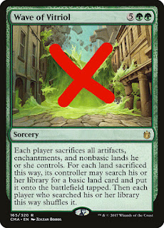 I also wanted a way to specifically wipe artifacts and enchantments. But, the thing with multiplayer games and only doing one game is that non-creature removal tends to be more sideboard-able. Even with a board wipe like Wave of Vitriol, there's not much positive boon it creates for you in the end.